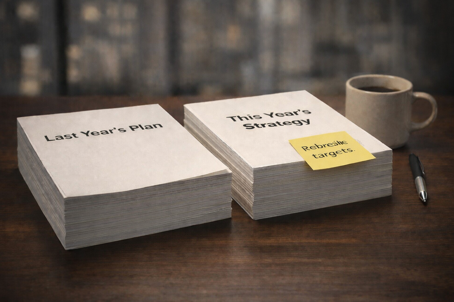 It can feel comfortable and give the impression that the strategic work is done. But turning last year’s plan into this year’s strategy asks it to do something it was never designed for. And when an outdated plan is treated as strategy, the organization ends up guided by assumptions that no longer match the market. What looks like a standard process often leads to piecemeal decisions, missed shifts, misallocated resources, and choices anchored in the past.